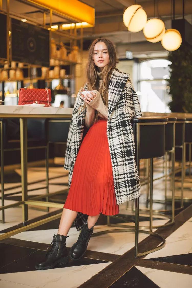 选好了合适自己的厚外套,我们又该如何与裙子进行搭配呢?